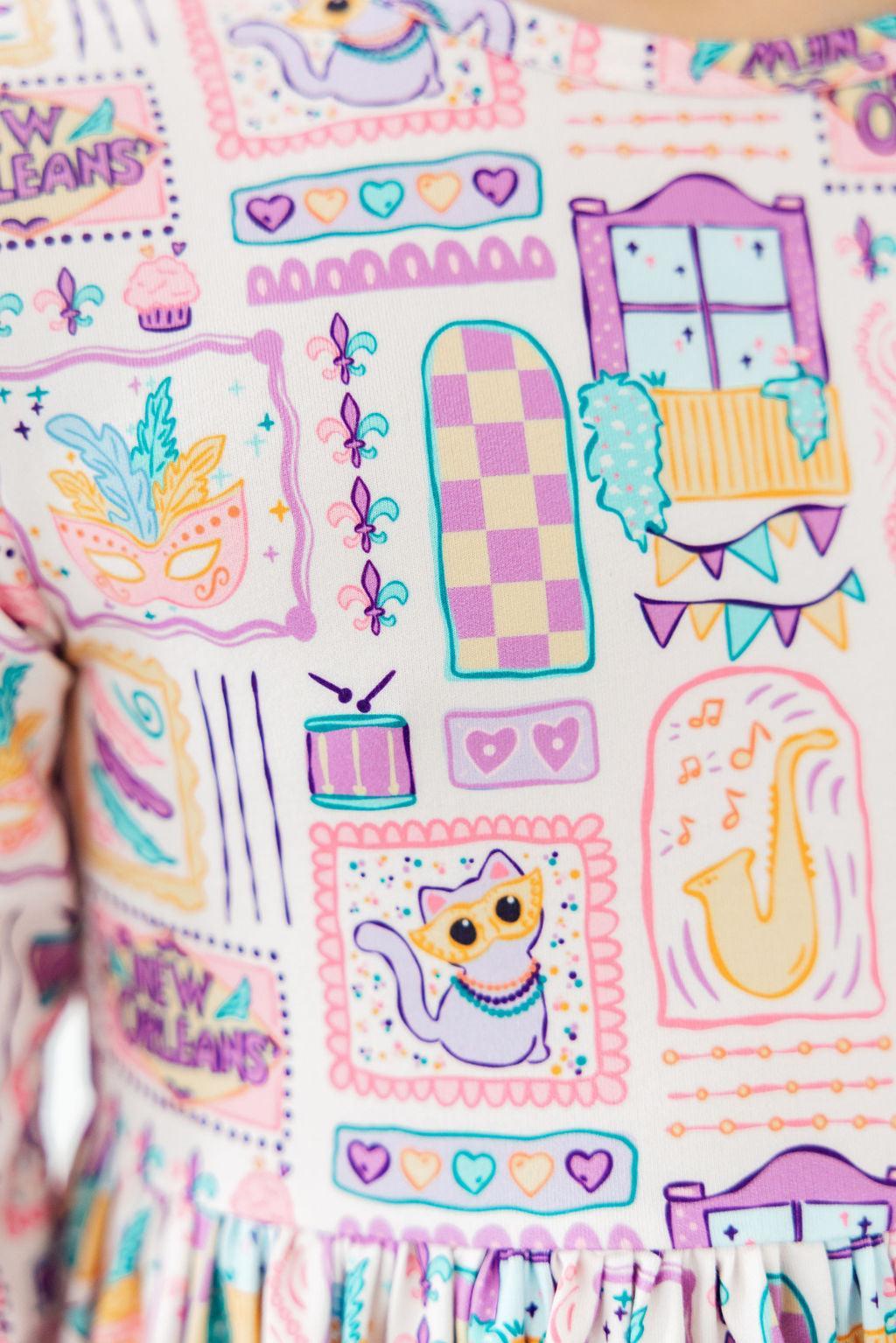 French Quarter Fun 3/4 Sleeve Pocket Twirl Dress