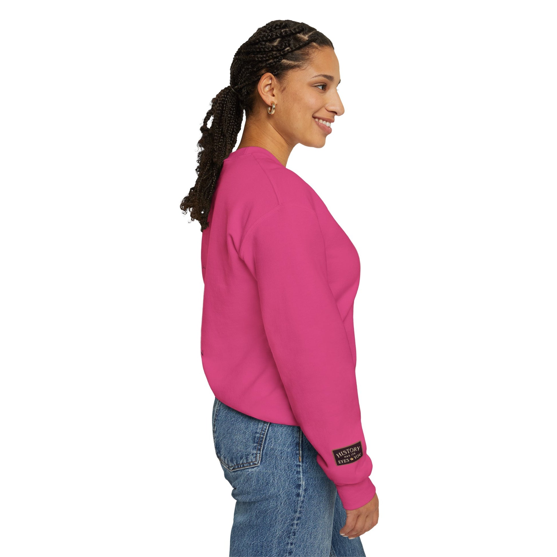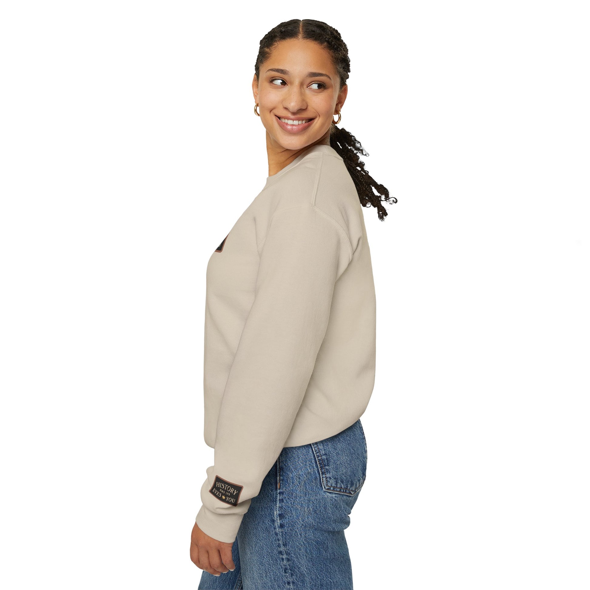 A soft, sturdy crewneck that carries a quiet kind of reverence — the “History Has Its Eyes On You” musical design feels like a chorus mid-verse: attentive, reflective, and slightly defiant. This sweatshirt settles in around your shoulders with familiar weight and breathability. Wear it to late-night rehearsals, vinyl listening sessions, or city walks when you want your outfit to hum with meaning. The embroidered or printed lettering and subtle wrist details read like concert-ticket scribbles — personal, tactile, and made to last. It’s durable enough for repeat performances, yet gentle against the skin, so you can stay focused on the music, the memory, or the line you’re about to sing.